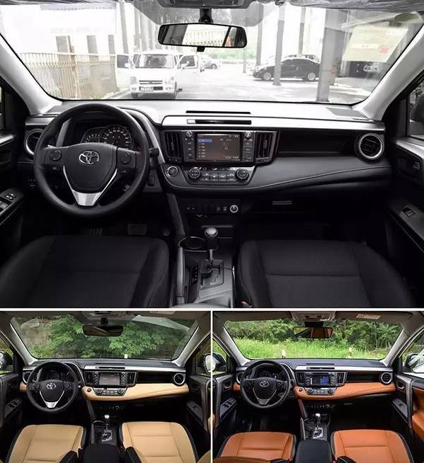 RAV4榮放的內(nèi)飾增加了兩個新配色;內(nèi)飾的選材用料還是挺不錯的,無論是高配還是低配,中控臺都采用了真皮材質(zhì)來包裹。