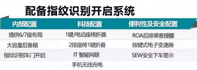 第四代勝達(dá)在配置方面進(jìn)行了升級(jí),加入了車輛指紋識(shí)別技術(shù)。車主不僅可以直接使用指紋解鎖車門(mén)和啟動(dòng)汽車引擎,而且在系統(tǒng)感應(yīng)到車主指紋ID后,還可以將座椅、后視鏡等帶有記憶功能的配置調(diào)整到用戶此前的預(yù)設(shè)位置。此外,該車還配備有電動(dòng)座椅折疊、IT智能互聯(lián)網(wǎng)+手機(jī)充電等。