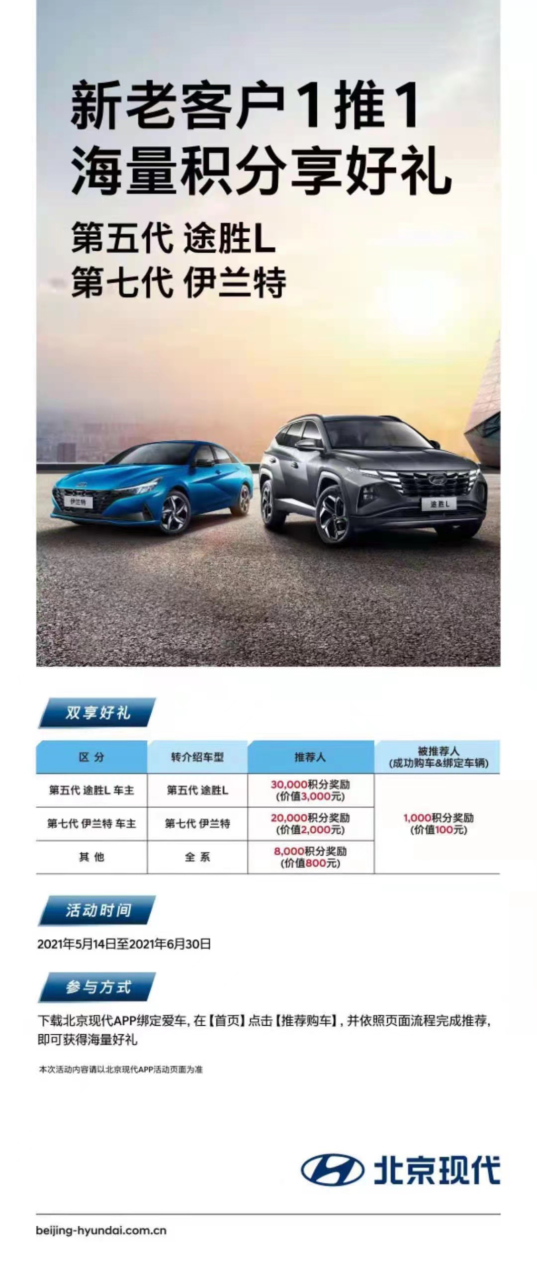 推薦好友成功購買北京現(xiàn)代