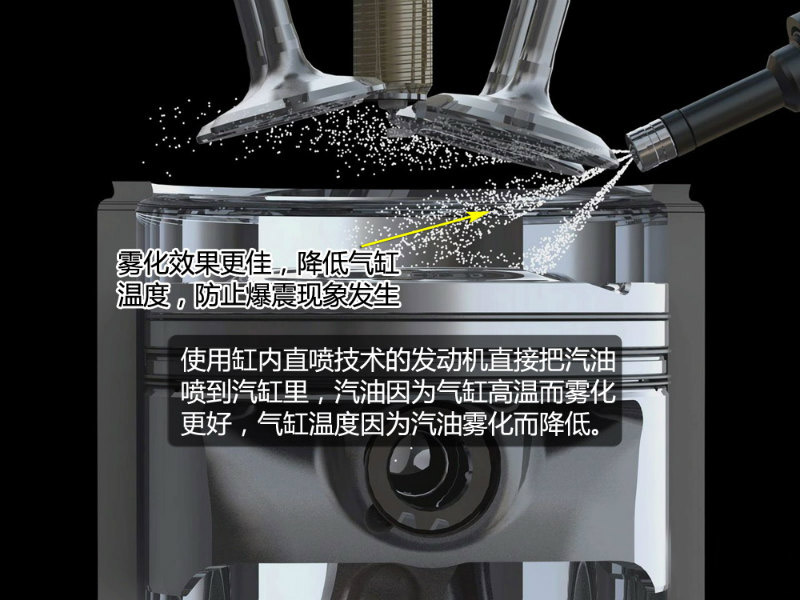 此外,對(duì)于在進(jìn)氣歧管噴射的增壓發(fā)動(dòng)機(jī),發(fā)動(dòng)機(jī)爆震只有在加大噴油量,降低氣缸溫度后才可改善或消除,這導(dǎo)致了油耗的急劇升高。而使用缸內(nèi)直噴技術(shù)的發(fā)動(dòng)機(jī)直接把汽油噴到汽缸里,汽油因?yàn)闅飧赘邷囟F化更好,氣缸溫度因?yàn)槠挽F化而降低,這樣達(dá)到了一個(gè)雙贏的局面——既控制了爆震也降低了油耗。