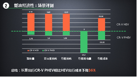 與對(duì)標(biāo)車型1的差別顯而易見。關(guān)鍵是對(duì)標(biāo)車型2——乍一看差別似乎并不大。然而別忘了,對(duì)標(biāo)車型2的純電續(xù)航里程不足CR-V銳·混動(dòng)e+的一半。如果多場(chǎng)景綜合來看(偶爾充電),CR-V銳·混動(dòng)e+的用車成本仍會(huì)顯著低于對(duì)標(biāo)車型2。