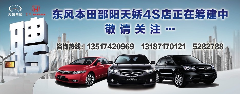 東風(fēng)本田邵陽天嬌4S店招賢納士啦