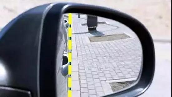 當(dāng)你順直車身后,注意觀察右側(cè)放光鏡中的門把手是否與馬路邊對齊。