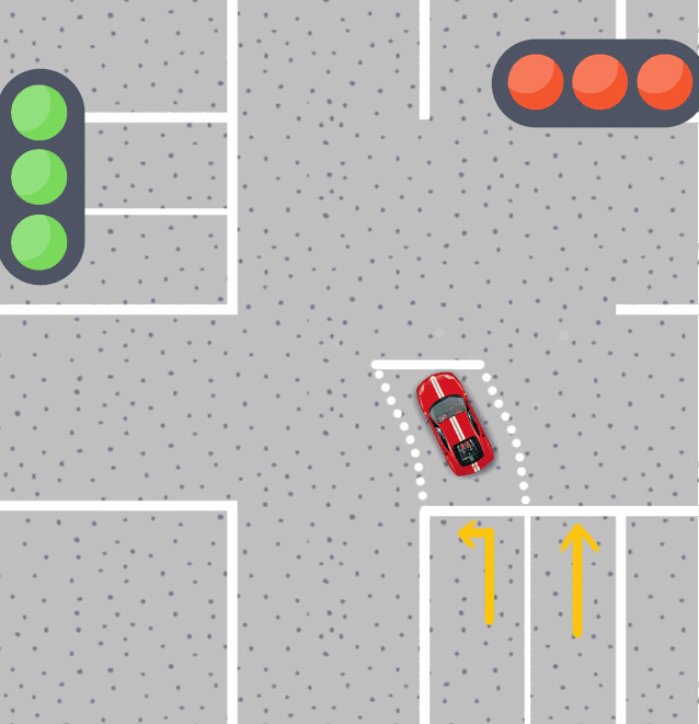 左轉彎待轉區(qū)是指當同向直行車道綠燈亮起時,左轉車輛必須進入待轉區(qū)域等候,等待交通信號燈的變化,允許通行才可左轉。