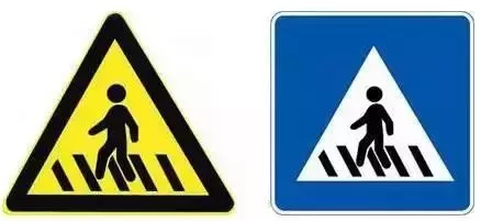 明明就是“膚色”不同,卻被劃分成了兩種類型的交通標(biāo)志。黃色背景表示警告;藍(lán)色背景表示指令、遵循。