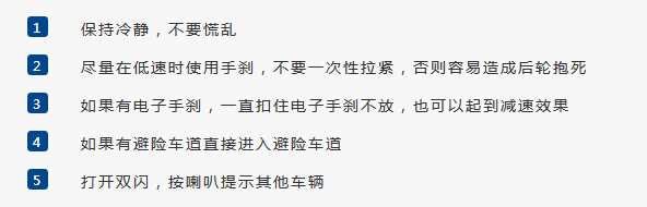 如果剎車出現(xiàn)了失靈的狀況,也請(qǐng)大家牢記以下幾點(diǎn),保障自己的人身安全: